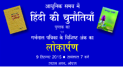 विश्व हिंदी सम्मेलन की पूर्व संध्या पर (9 सितंबर 2015 को सायं 7 बजे) भोपाल के स्वराज भवन, रवींद्र भवन परिसर में "आधुनिक समय में हिंदी क...